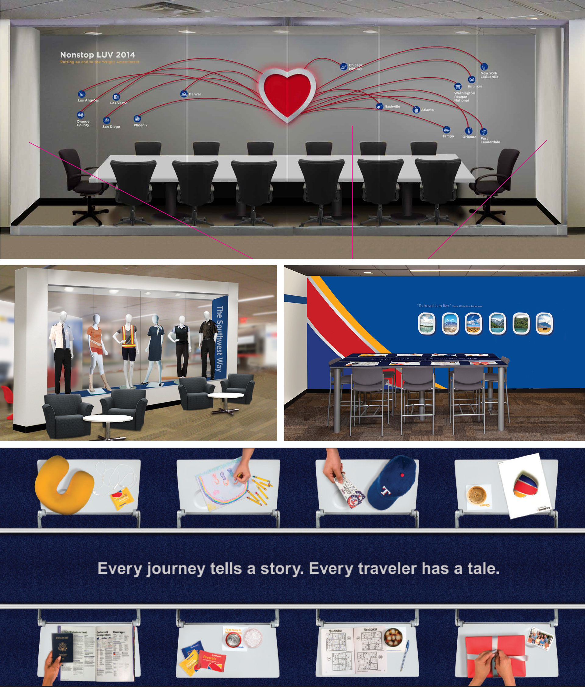 Southwest Airlines' "Culture Centers," or multipurpose co-working spaces, are all designed around a theme. This center is called "The Southwest Way" and is all about company pride. The center below it, called "Potluck," celebrates the diverse work environment.